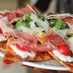 a kitchen had everything we needed. furthermore, parking nearby was a bonus. only 10 min walk to downtown. we were in a hurry and didn't visit the pizza restaurant, but it seemed reasonably priced.